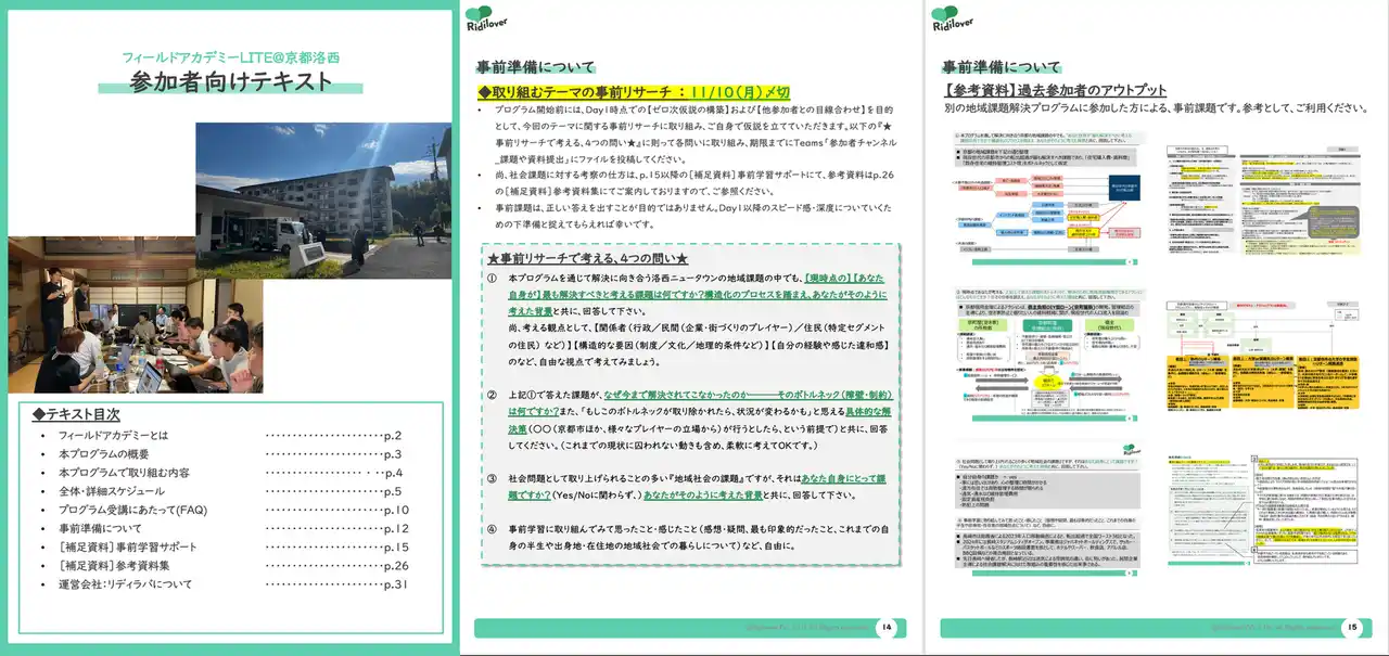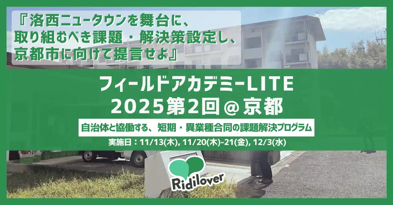 株式会社Ridilover(所在地東京都文京区、代表取締役:安部敏樹、以下:リディラバ)と株式会社ツナグム(所在地:京都市上京区、代表取締役:田村篤史、以下:ツナグム)は、2025年11月~12月にかけて、京都市を提言先に迎えた異業種合同の短期・越境プログラム:フィールドアカデミーLITEを開催致しました。 |