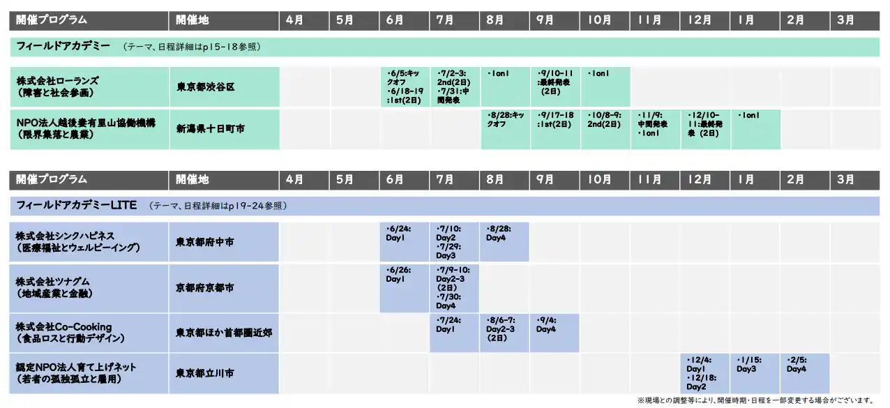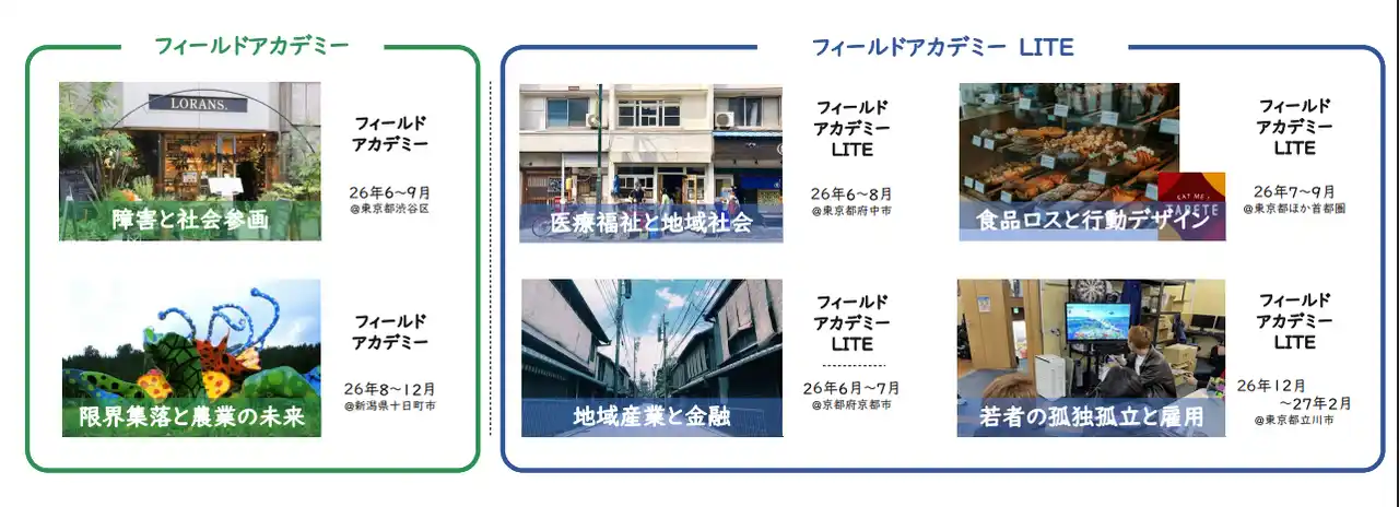 ご案内しているフィールドアカデミー・フィールドアカデミーLITEですが、2026年度も開催が確定しております。本年度は過去最多の6テーマ・現場で、開催を予定しております。 |