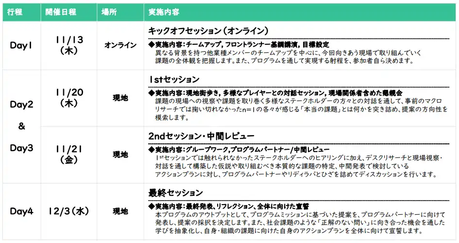 ■ DAY2-3(2025/11/20-21)|現地現物で街や人との向きあいを通じ、仮説検証のサイクルを高速で回し、実態に即した解決策の策定に挑戦 |