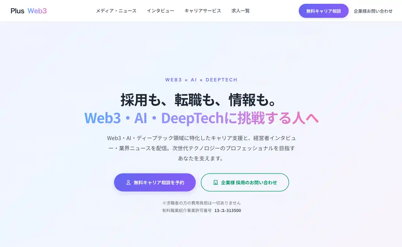| これまで「Web3=暗号資産・ブロックチェーン」という枠組みで情報を発信してまいりましたが、昨今の技術革新を受け、「AIやWeb3、DeepTechなど、新たなテクノロジーを活用したビジネスに挑戦する企業や経営者を応援するメディア」へと刷新いたしました。 | |||