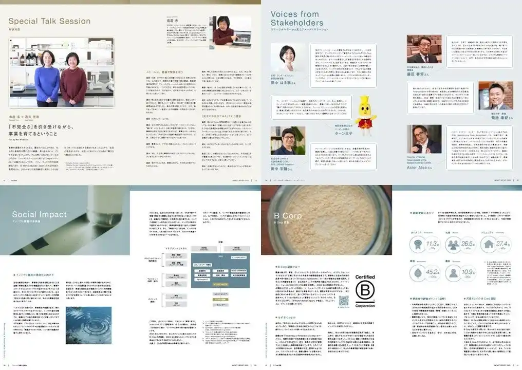当社は創業以来、事業性と社会性の両立を目指し、その両面でポジティブなインパクトの創出を追求してまいりました。2025年度版では、食領域への事業拡張、B Corp更新など一年の活動を振り返り、事業活動と社会性の両立における葛藤、組織的かつ体系的なインパクト追求の模索など、試行錯誤のプロセスを含めて開示しています。 |