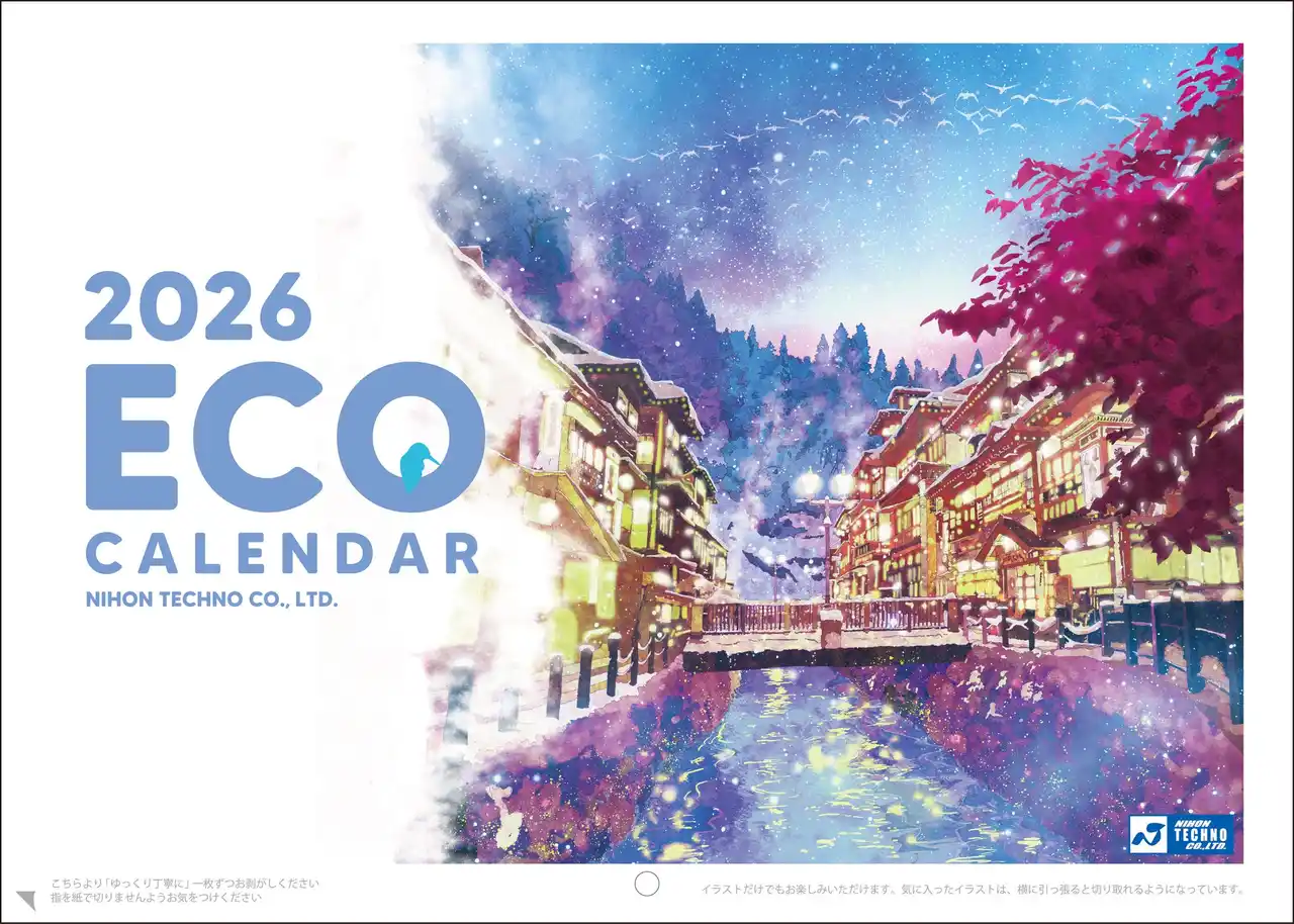 日本テクノのエコカレンダーは、環境・自然・エコをテーマにしたキャッチコピーを一般の方から募集し、採用作品にプロのアーティストがイラストを描き下ろして完成させる、応募者参加型のオリジナルカレンダーです。日本テクノでは「お客さまと一緒に環境保全活動に取り組みたい」という思いから、2007年よりエコカレンダーを制作してきました。完成したカレンダーはご応募いただいたすべての方にプレゼント。2026年版は応募者をはじめ、広く82,000部配布しました。応募総数は29,260作品(6,656名)!個人の方のほか、学校の環境教育や会社の環境活動の一環としてなど、団体でのご参加も多くいただいています。 |