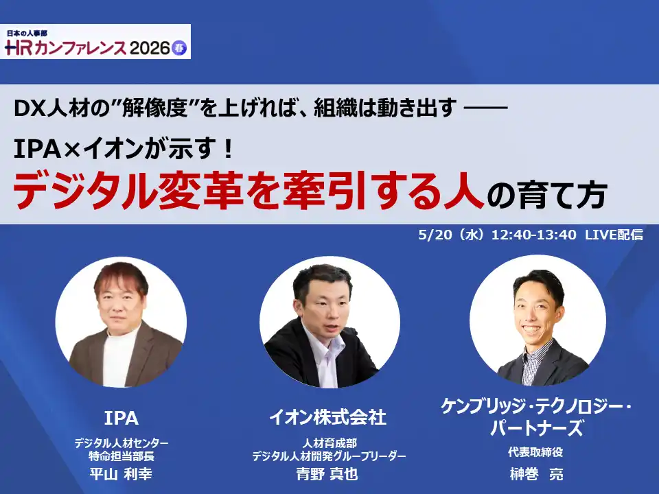 ケンブリッジ・テクノロジー・パートナーズ株式会社(本社:東京都港区、以下「ケンブリッジ」)は、2026年5月20日に開催される日本の人事部主催「HRカンファレンス2026-春-」の基調講演に登壇します。 |