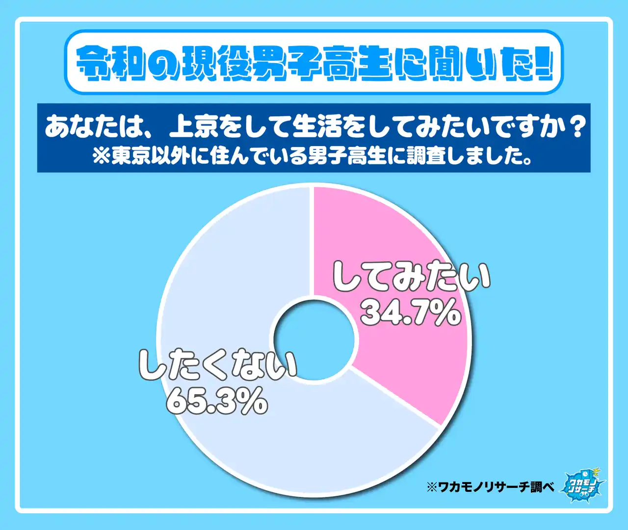 上京したくない男子高生が65.3%と大きく上回る結果となりました。 |