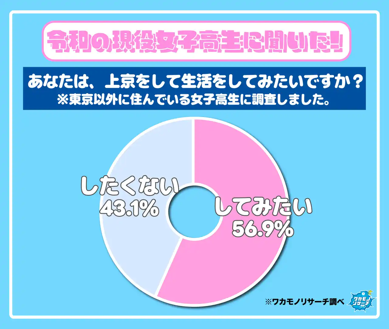 上京してみたいと回答した女子高生は56.9%、 |