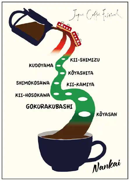 | 「高野山とふもと ジャパンコーヒーフェスティバル2026春」ならではの『コーヒー×電車の旅』をモチーフにした、このイベント限定の特別デザインです。当日の心に残った一杯の余韻を、ご自宅に持ち帰っても思い出してもらいたいという想いを込めてデザインしました。 | ||||||||||||||