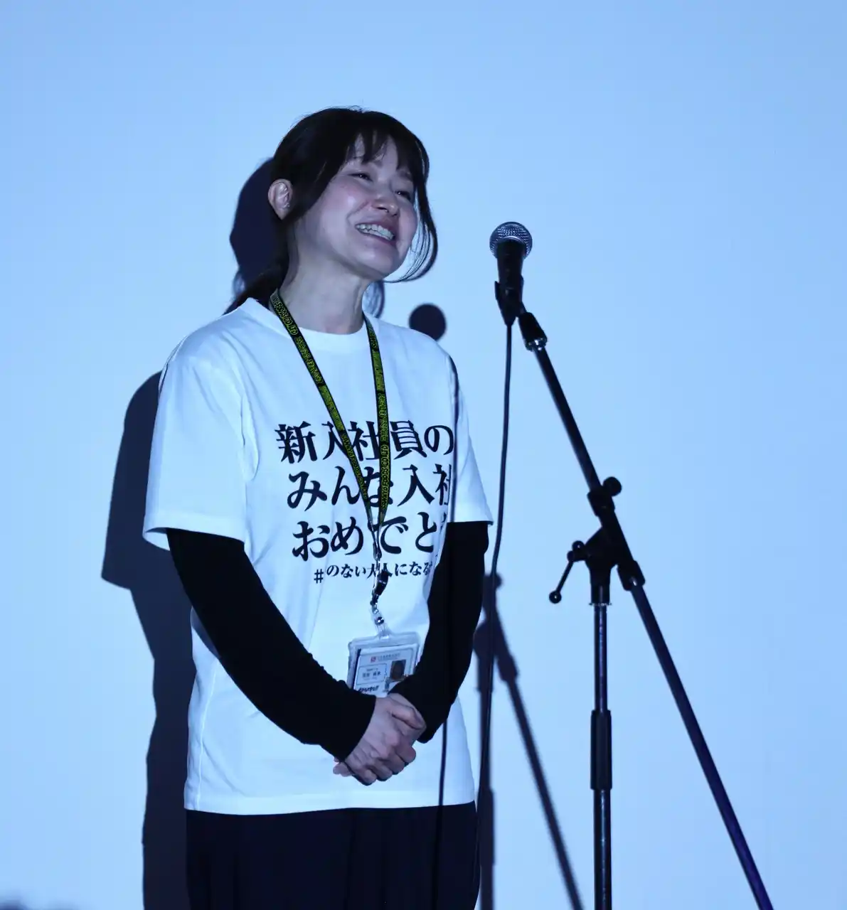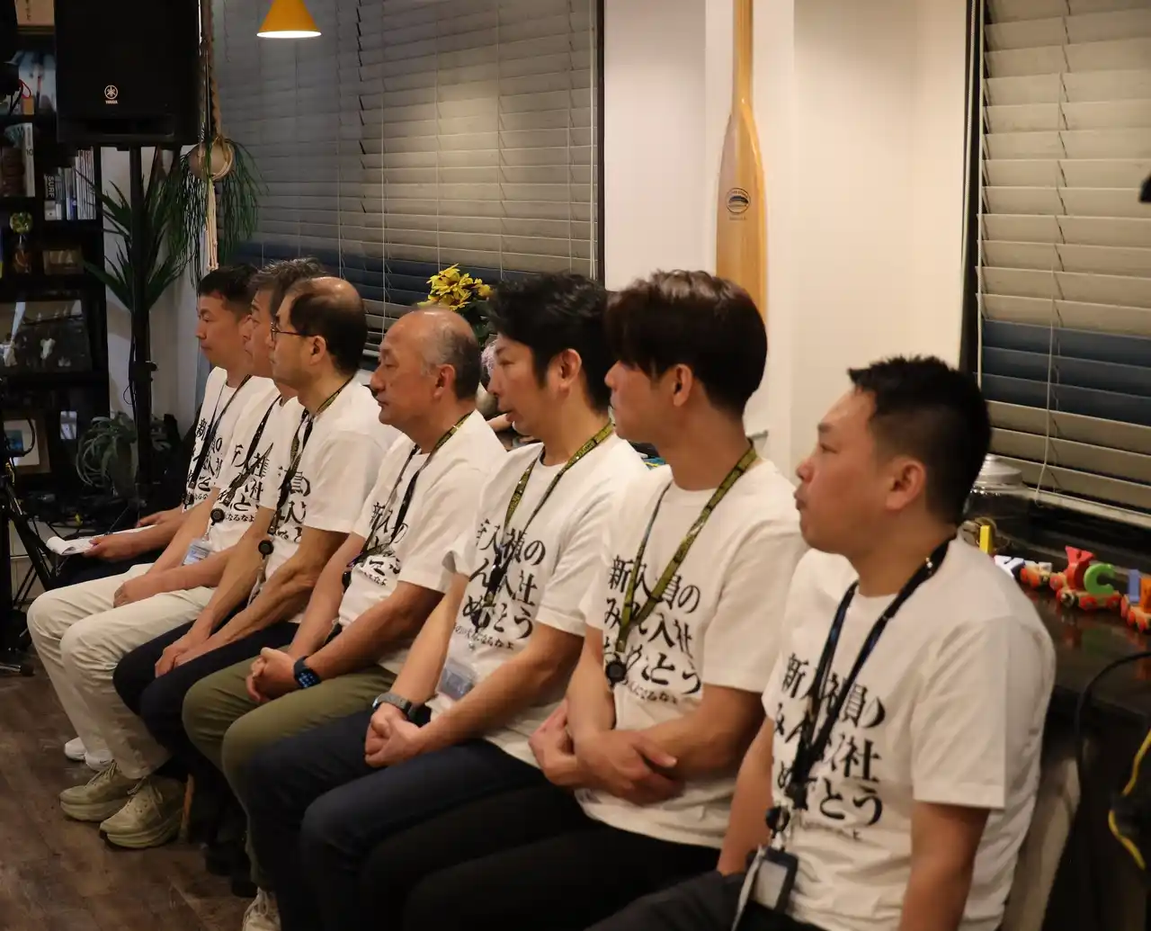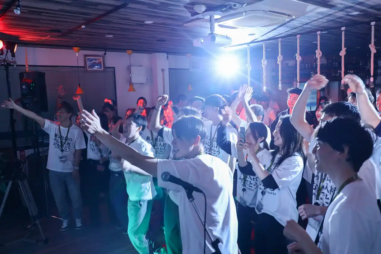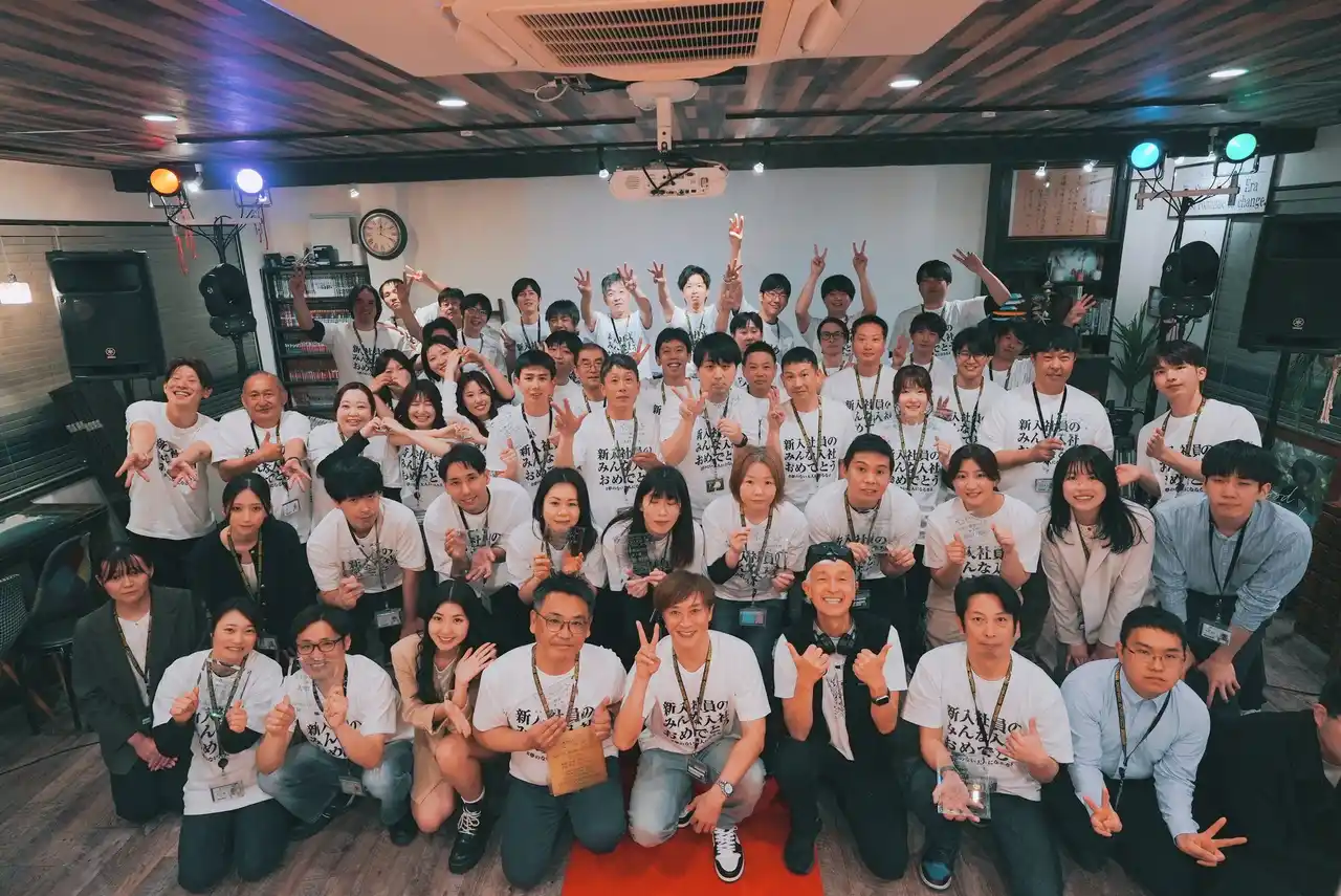 | 入社式では「新たな旅立ち」をテーマに、新入社員一人ひとりの門出を祝う式典を実施しました。新入社員以外の出席者は「夢のない大人になるなよ」と書かれたオリジナルTシャツを着用し、会社全体で新しい仲間の挑戦を応援する姿勢を示しました。 | ||||||||||||||