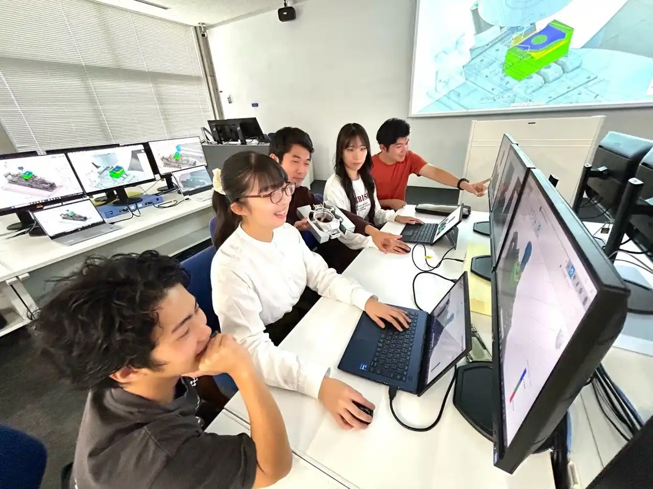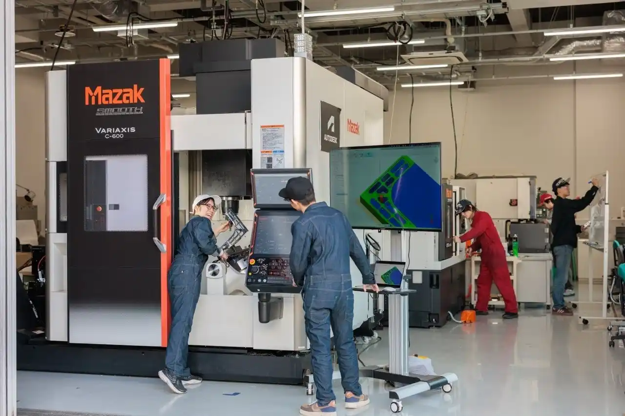この教育モデルを象徴するのが、学部 2 年生から 5 軸加工機を扱う点です。5 軸加工は、航空機やモータースポーツ分野で用いられる高度な製造技術であり、通常は大学院や企業研修で扱われる領域です。 |