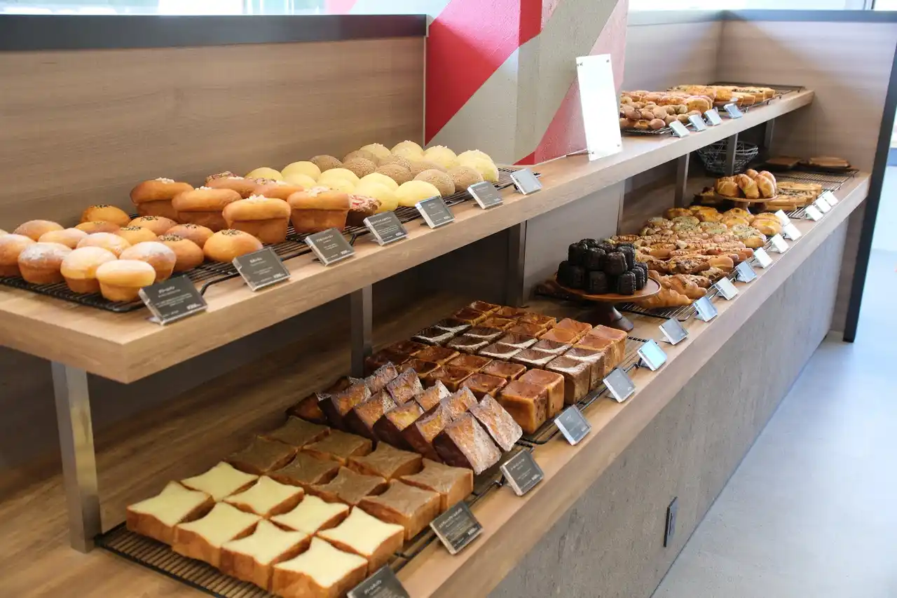 1階には、白河の地域資源である「白河石」を使用したパン棚を設置。 素材の質感がパンの魅力を引き立て、訪れる人の五感に響く空間に仕上げました。 |