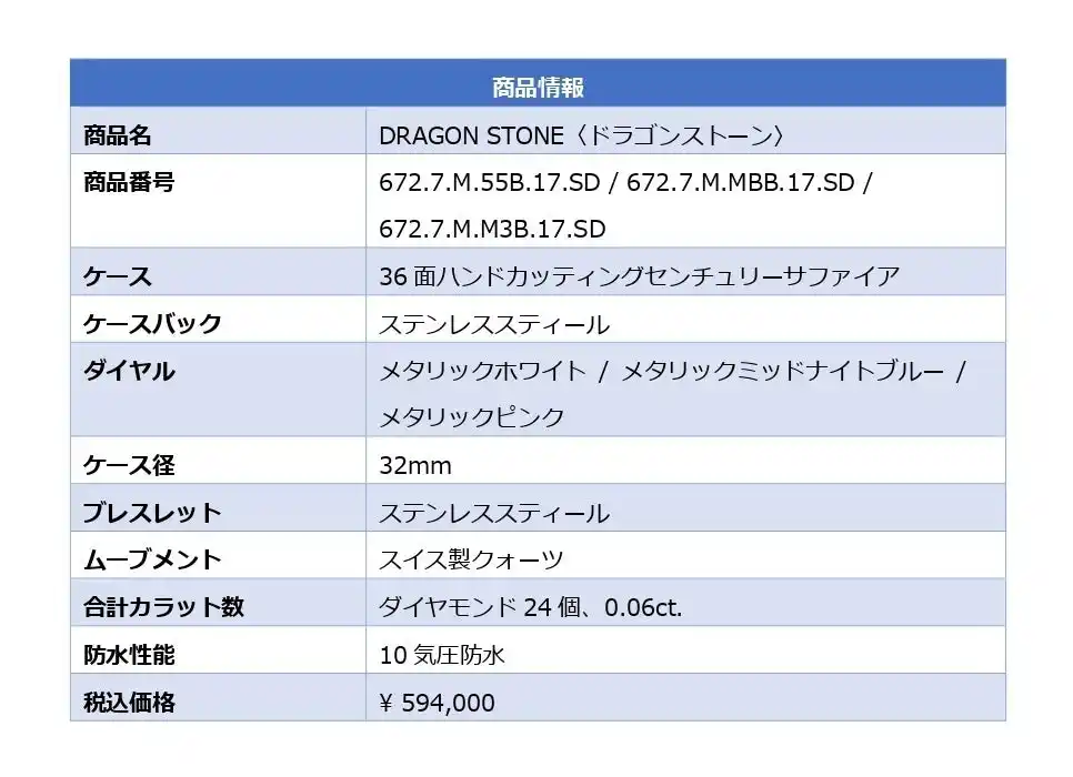 【センチュリータイムジェムズジャパン株式会社】 センチュリー「ドラゴンストーン」からシリーズ初のステンレススチールモデルが登場