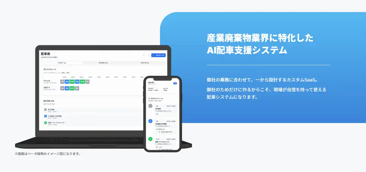 「配車くん」は、産業廃棄物業界に特化したAI配車支援システムです。 業界特有の複雑な条件や現場ごとの運用ルールを踏まえ、実務で活用しやすい配車支援の実現を目指しています。 URL:https://riburainc.co.jp/lp/haisha-kun