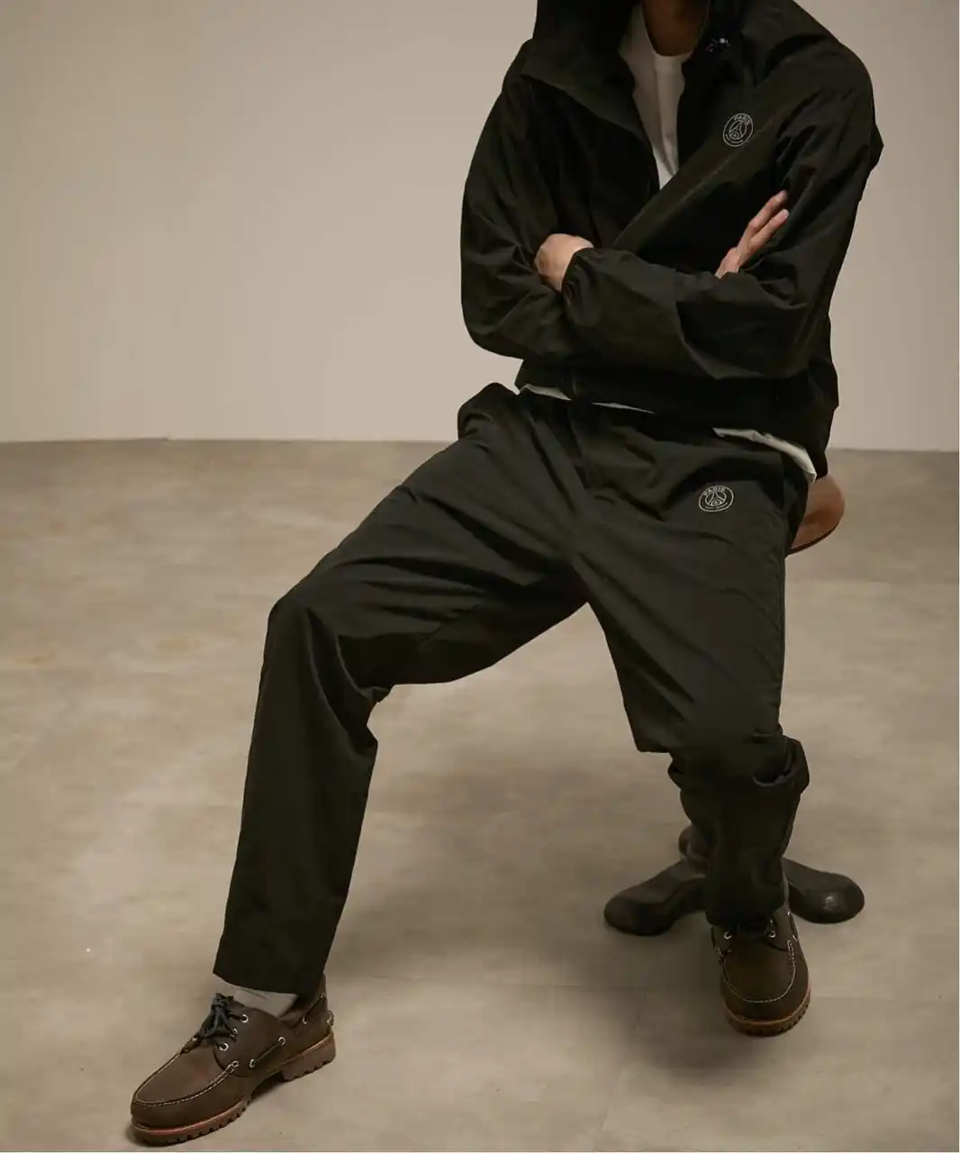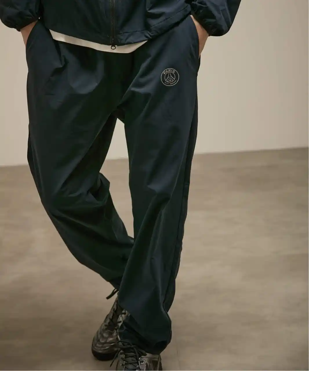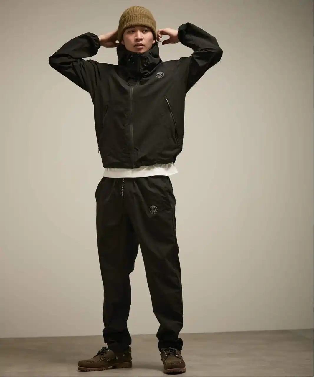| デザインは、無駄を極限まで削ぎ落としたミニマリズムの極致。胸元とパンツに配された同色のエンブレムが、主張しすぎない大人の矜持を感じさせます。特筆すべきは、そのマットな質感。ストリートの躍動感、タウンユースの軽快さ、そしてビジネスカジュアルの抜け感。どんなシーンに投入しても、一瞬でその場の空気を「格上げ」してくれます。 | |||||||||