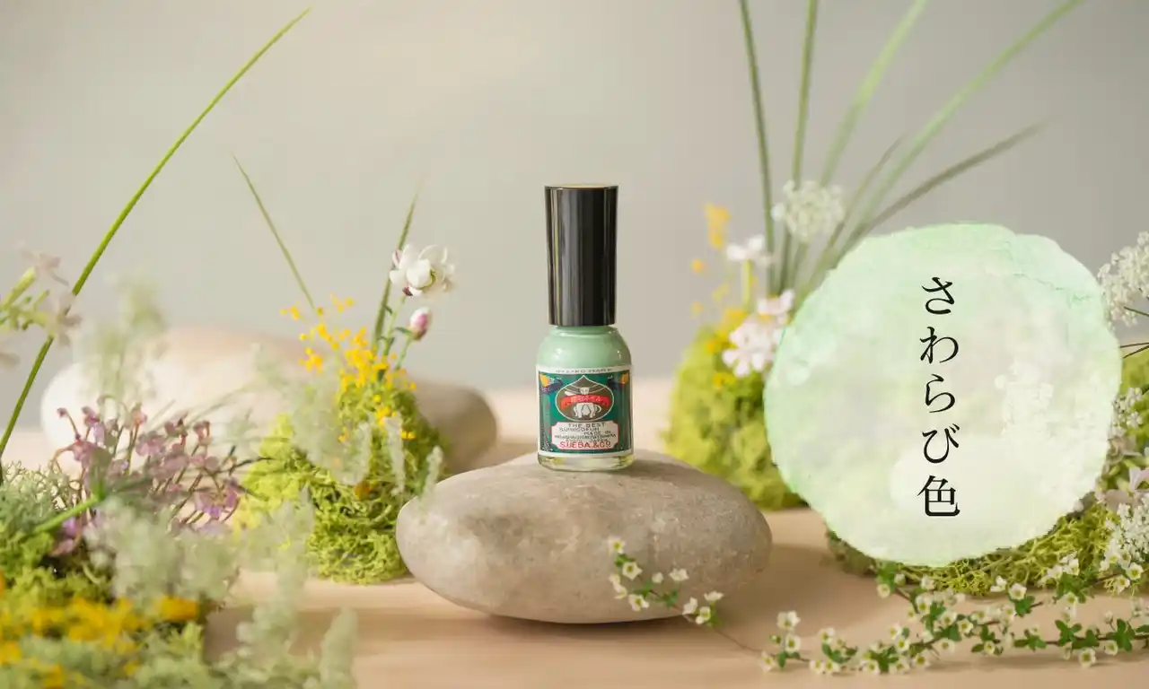 日本画用絵具の原料となる「胡粉(ごふん)」を使用した上羽絵惣の胡粉ネイルは、美しい日本の伝統色を爪という小さなキャンバスで愉しめます。また水溶性なので爪にやさしく、においもほとんどありません。