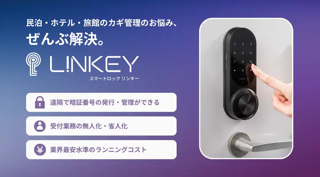 | UMEが提供するスマートロック「LINKEY」シリーズは、暗証番号によるキーレス入室や鍵管理の効率化を実現し、宿泊施設や民泊事業者を中心に多くの導入実績があります。 | |||||||||