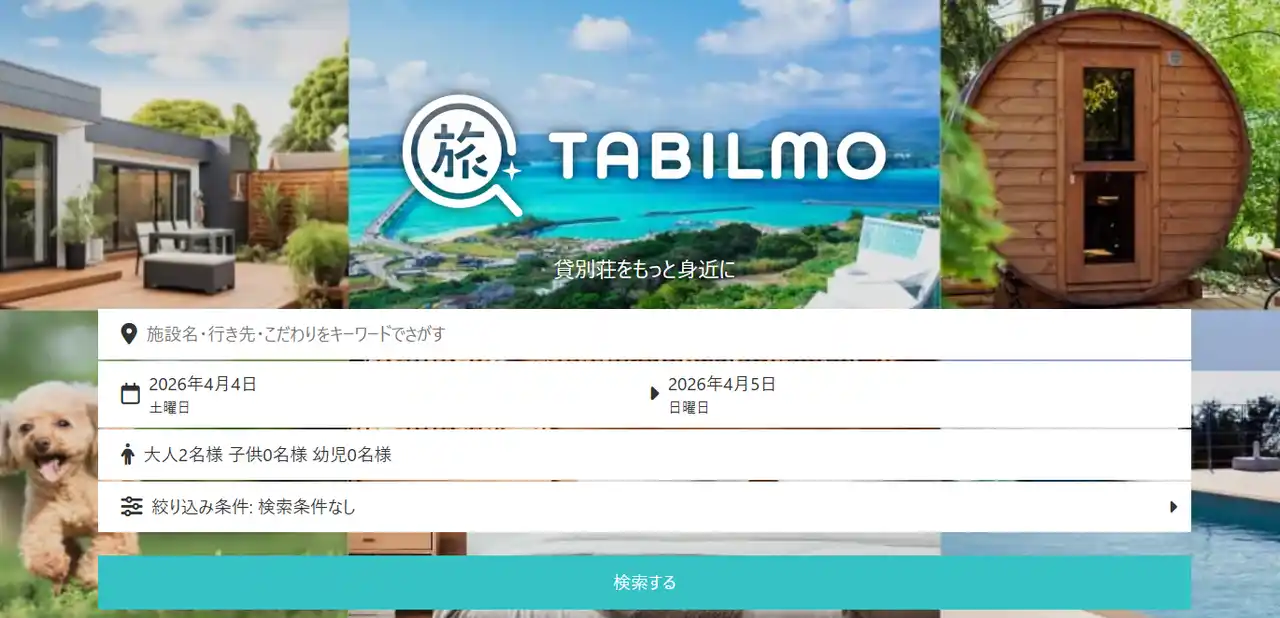 貸別荘・コテージ・ヴィラ・古民家など「一棟貸し」タイプの宿泊施設に特化した予約サイト「TABILMO」を運営しています。 プライベート空間での非日常体験を求めるゲスト層に向けて、施設の魅力を最大限に伝える検索・掲載機能を提供し、宿泊施設の集客および販売最適化を支援しています。 |
