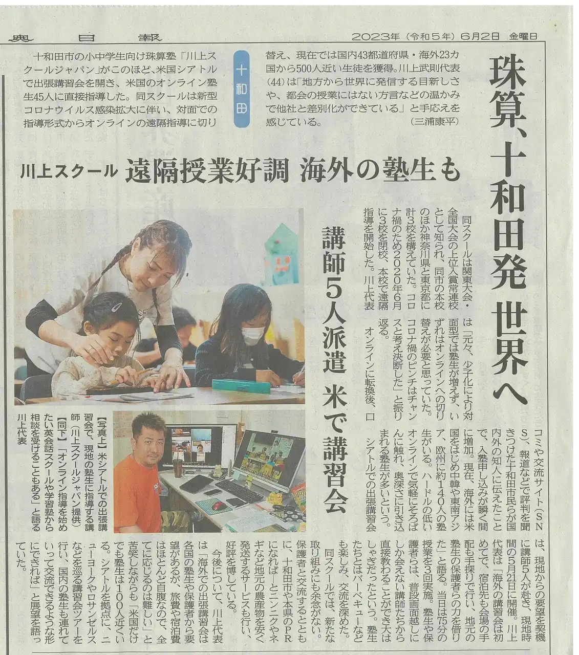 現在、川上スクールジャパンには国内46都道府県から490名、海外26ヶ国から280名、計770名の生徒が在籍する。最年少は3歳、最高齢は80代。 海外在住の日本人家庭にとって、日本の教育を受けさせたいという需要は大きい。オンラインなら一時帰国中でも、旅行先でも、まるで日本にいるかのように学べる。海外の保護者同士のSNSで口コミが広がり、アメリカ、カナダ、イギリス、オーストラリアなど、世界中に生徒の輪が広がった。 2023年5月にはアメリカ・シアトルで出張講習会を開催。講師5名を派遣し、現地の生徒45名を直接指導した。 |