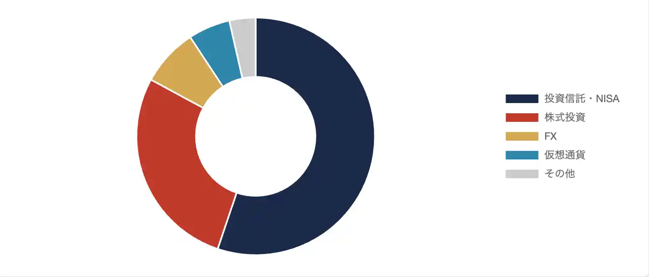 最初に始めた投資として「投資信託・NISA(57.1%)」が圧倒的トップとなりました。2位の「株式投資(28.7%)」を大きく上回っており、新NISA制度の使いやすさと国の後押しにより、投資デビューの入口として投資信託・NISAが完全に定番化していることがわかります。 |