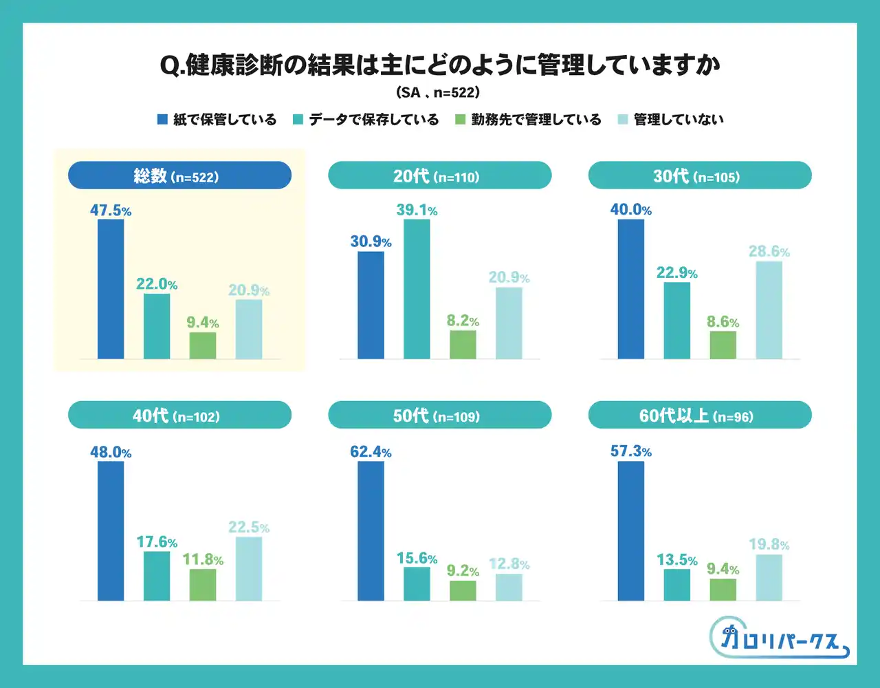 | 1. 健康意識64.8%も、管理は”紙中心” 2割が未管理 | ||||||||||||||||||||||||||||||||||||||||