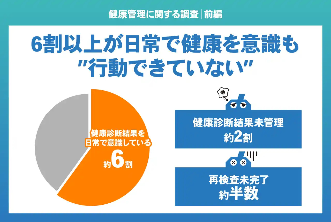 | 一方で、健康診断の結果が十分に活用されていない、再検査が未対応のままとなっているなど、実際の行動につながっていないケースも見られます。こうした背景を踏まえ、本調査では、従業員の健康意識と実際の行動のギャップに着目し、健康管理の実態を明らかにすることを目的としました。 | ||||||||||||||||||||||||||||||||||||||||