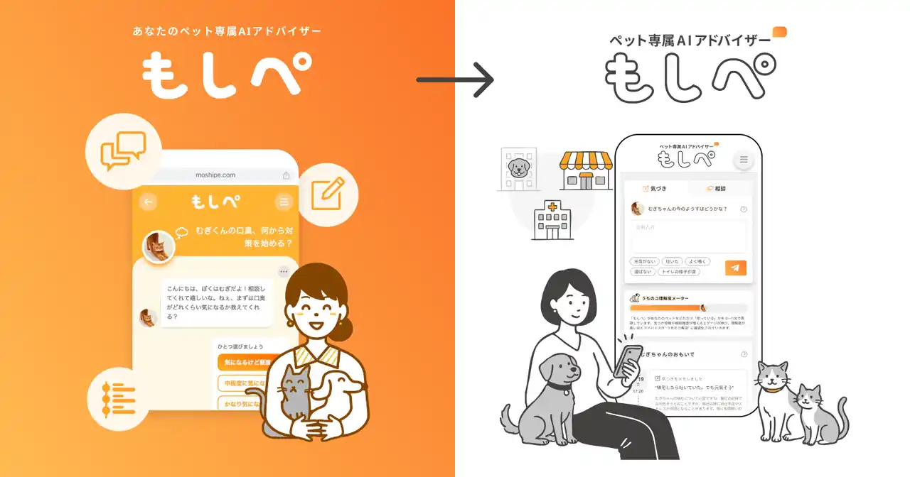 株式会社アニポス(東京都新宿区、代表取締役・獣医師:大川拓洋、以下「アニポス」)は、あなたのペット専属AIアドバイザー『もしぺ』(URL:https://www.moshipe.com/ )の、一般ユーザー向けサービスの提供を終了し、法人向けソリューションとして提供形態を刷新することを発表いたします。 |