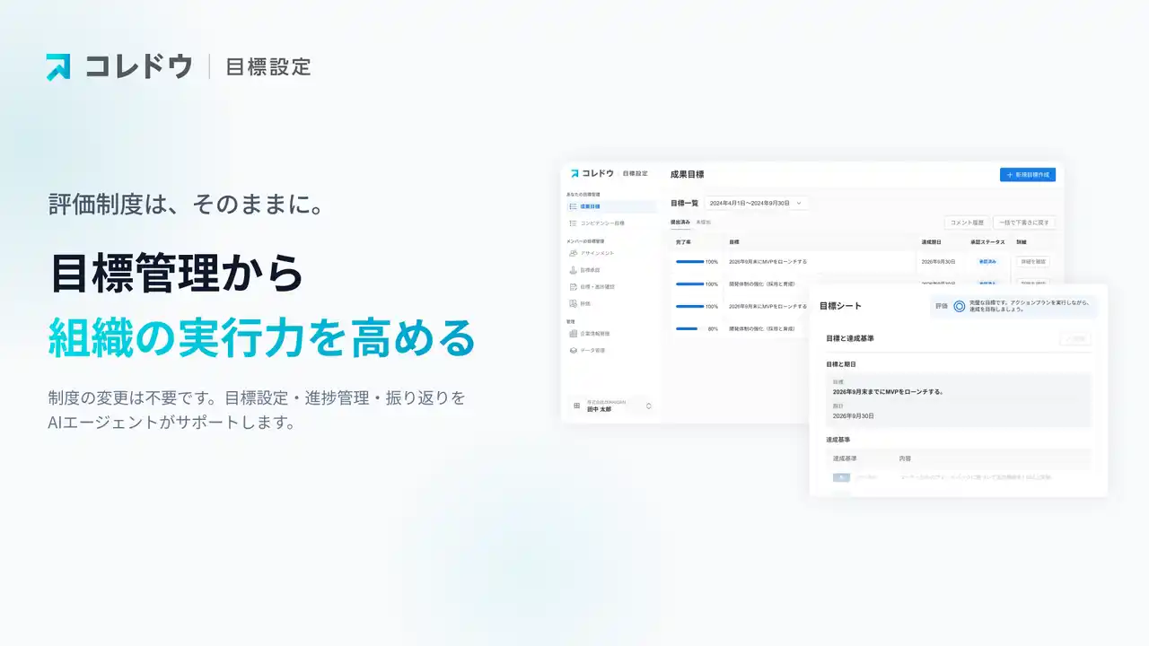 コレドウは単なる目標管理ツールではなく、組織の実行力を高めるマネジメント基盤となることを目指しています。 |