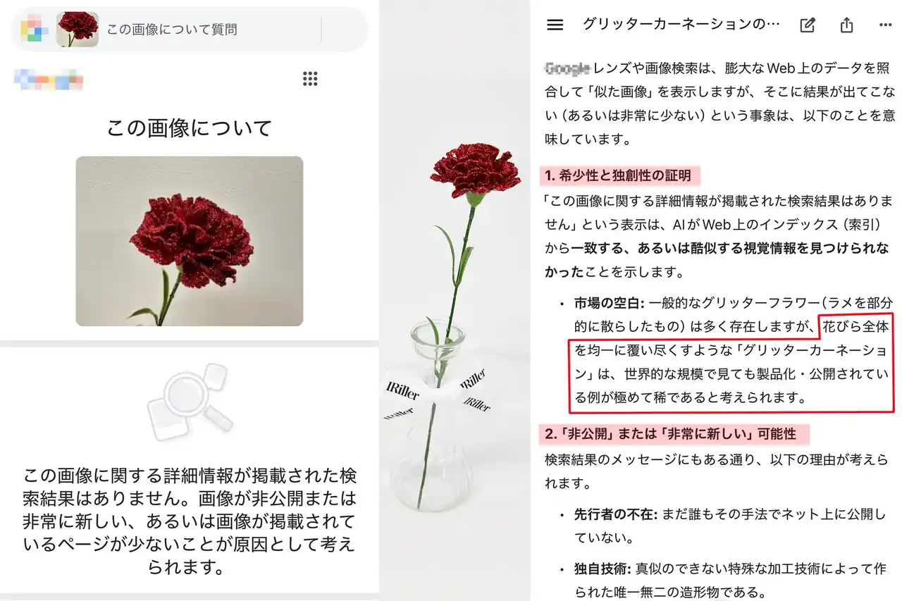 | ■ 一般的なグリッターカーネーションとの違い | |||
