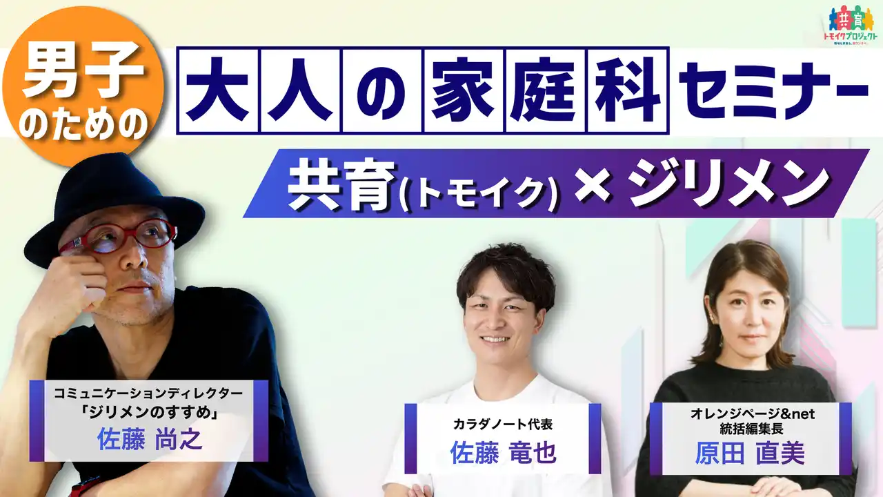 | 「家族の健康を支え 笑顔をふやす」をビジョンとし、家族と向き合う全ての人の伴走者として心身ともに健康な生活を支援する株式会社カラダノート(東京都港区 / 以下当社)の代表取締役 佐藤竜也は、厚生労働省「共育(トモイク)プロジェクト」と、料理・暮らし情報を発信する株式会社オレンジページ(以下、オレンジページ)が運営するWEBメディアの人気連載「ジリメンのススメ」とのコラボ動画に出演し、2026年3月31日に公開されました。 | |||