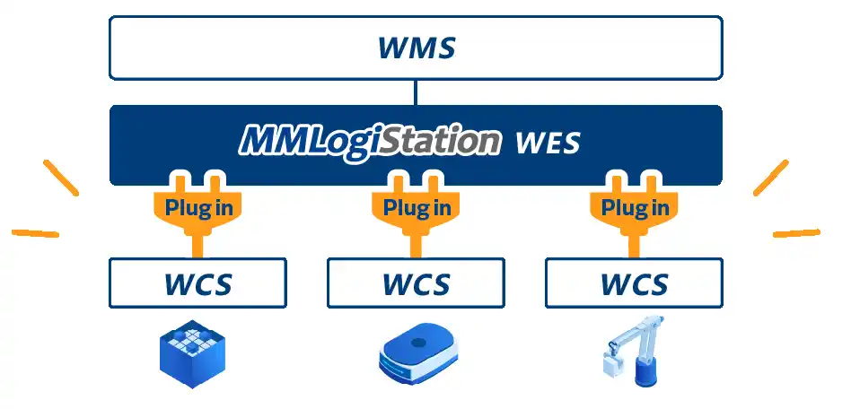 YEデジタルのWES「MMLogiStation」は、主要メーカーの自動化設備とのインターフェースをプラグインとして標準搭載しており、迅速な導入が可能です。複数メーカーの自動化設備を統合的に制御できる点も大きな特長です。 |