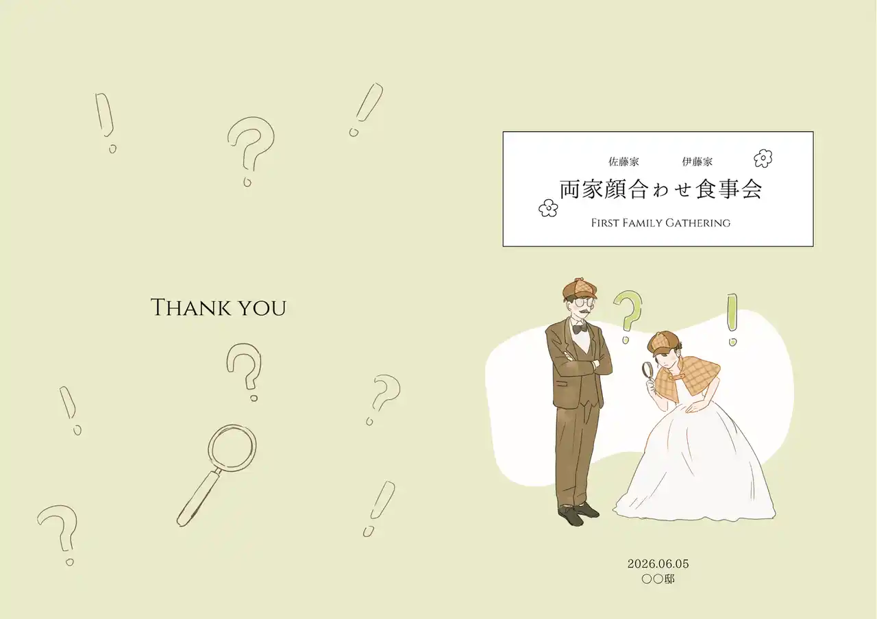 | 探偵の装いをしたふたりが描かれた、遊び心あふれる婚姻届。謎解き好きなおふたりにぴったりのデザインです。 | |||