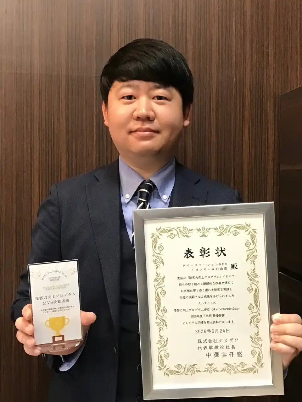 「MVPではなくMVSという“お店に贈られる賞”なので、個人ではなくスタッフ全員でいただいた賞だと思っています。まずは店舗の仲間に感謝したいです。今後も接客力の向上を軸に、お客様に支持されるお店づくりを続けていきます。」 |