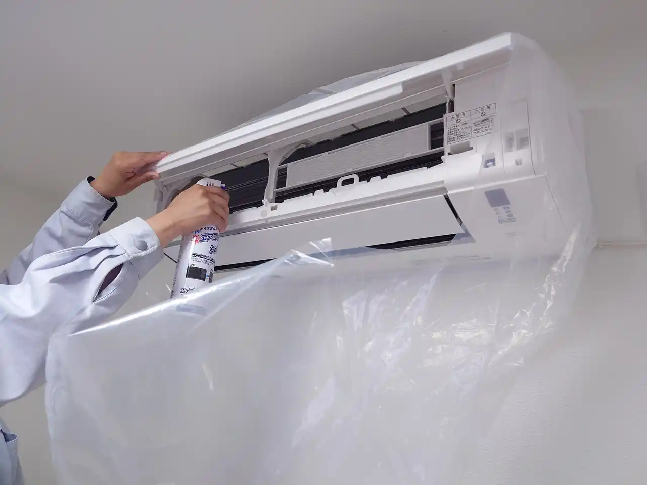 「かんたん装着エアコン洗浄カバー」は、洗浄液の跳ね返りを防止し、室内を汚さずに作業できるセルフクリーニング用のカバーです。 洗浄中の手や壁への飛び散りを防ぐことで、より安全で快適な作業環境を実現します。工具不要で簡単に取り付けられるため、初めてセルフ洗浄に挑戦する方にも最適です。 |