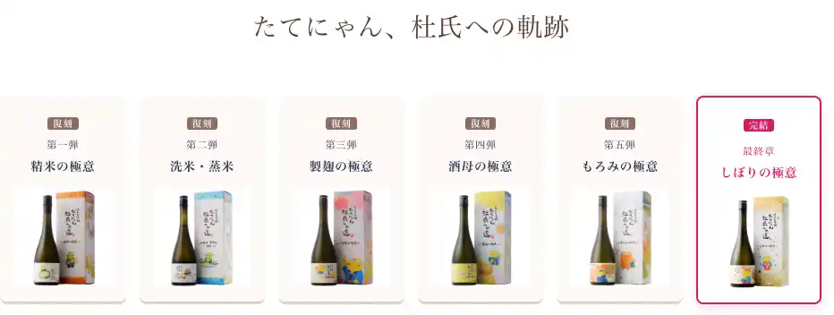 | 3年間の修行の集大成。 杜氏となったたてにゃんが醸す、感動の一本。 | ||||||||||||||||||||||