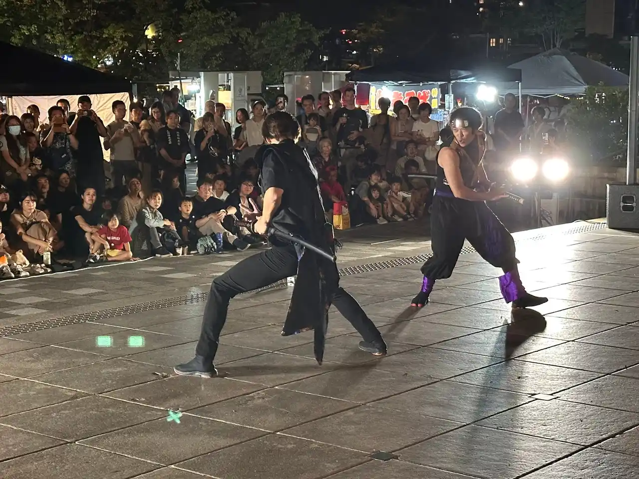 京都夜市でも人気の高い忍者ショーを今回も開催。訪日観光客にも親和性の高いコンテンツとして、京都の夜にエンターテインメント性を加えます。食や買い物だけでなく、見る楽しさ、体験する楽しさも味わえるのが京都夜市の魅力です。 |