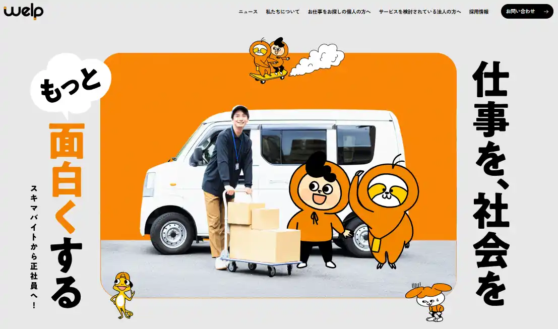 サービス名:welp 内容:スキマ時間を活用したスポットワークマッチングサービス URL:https://brand.welp.jp/