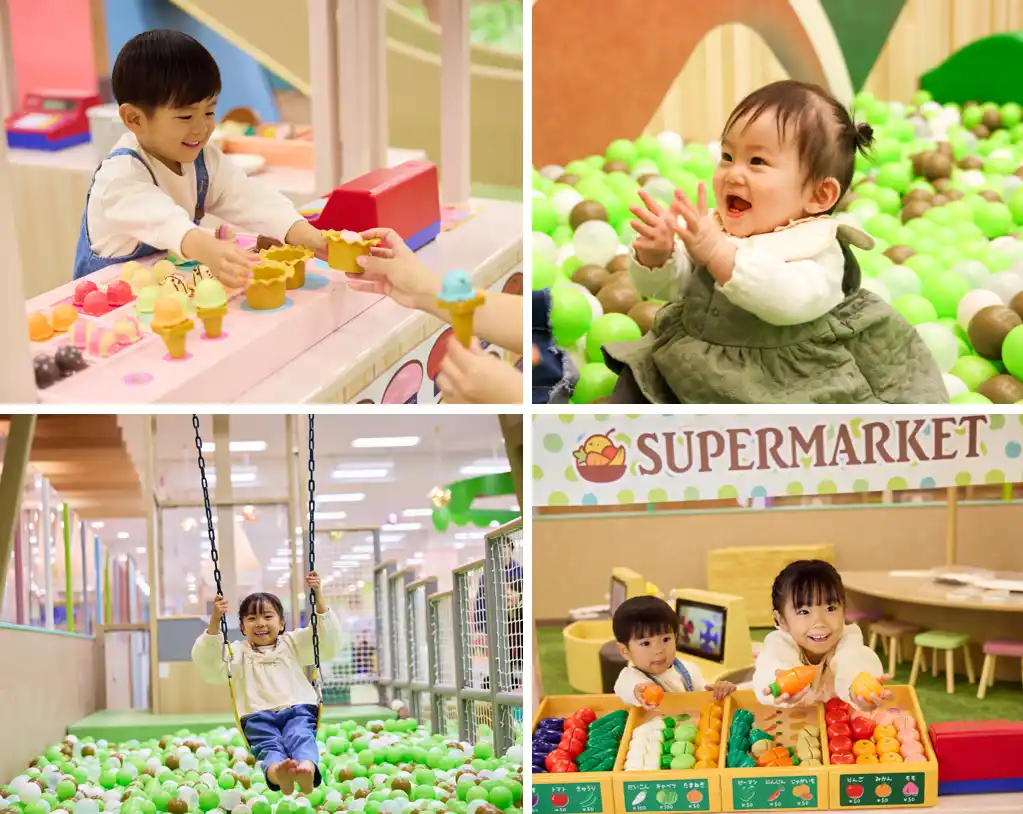 「わいわいぱーく」は親子で楽しめるキッズスペースです。 ごっこ遊びなど、さまざまな遊具を使った遊びが楽しめます。対象は0歳~小学2年生のお子さまとその保護者さま |