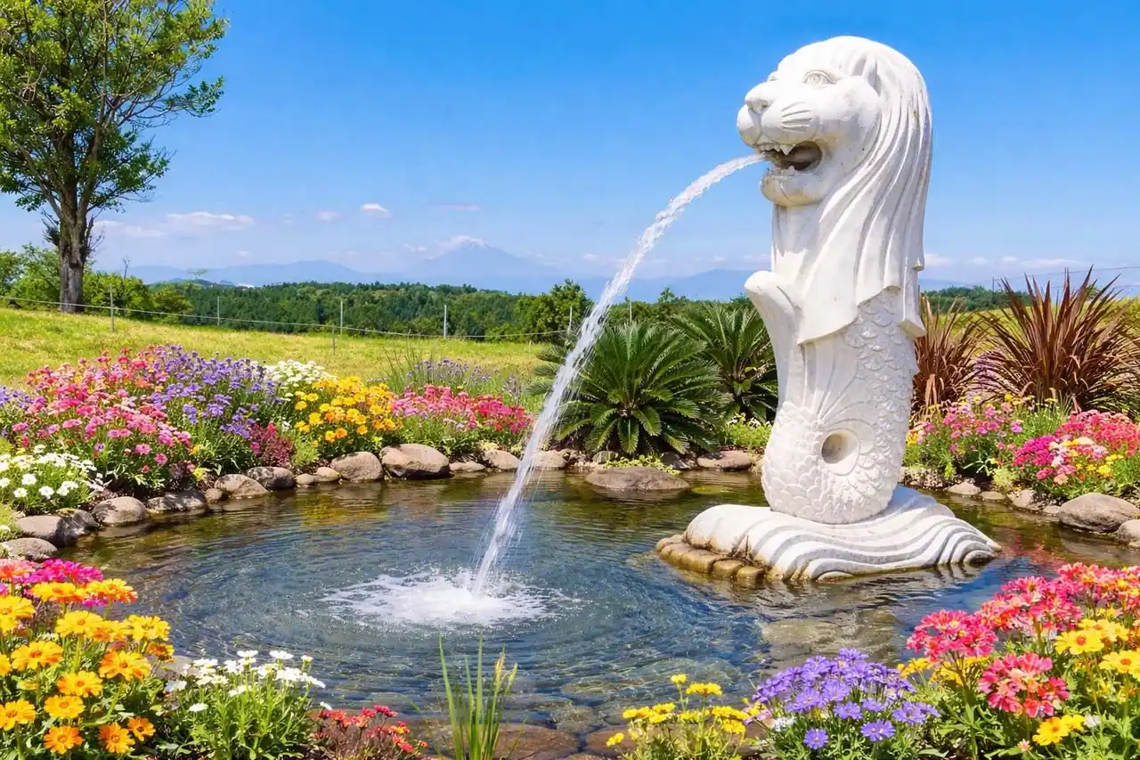 | 「カフェ&ジンギスカン FARM DINER」横のエリアにマザー牧場の新たなシンボルとして“シンガポール政府公認”日本初のレプリカ像であるマーライオン像(高さ2.5m)がやってきます! | ||||||||||||||||
