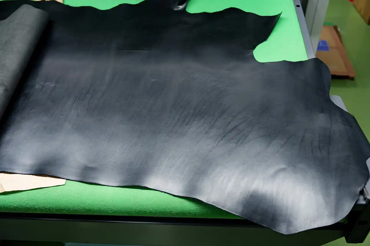 天然皮革には、牛が生きている時についた傷跡や葉脈のように見える血管の痕など「ナチュラルマーク」と呼ばれる跡が見られることがあります。傷や不良ではなく、革ならではの個性として楽しめる独自の表情です。 |