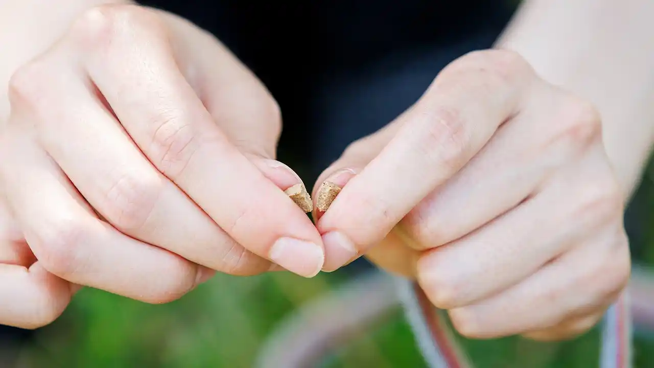 ・ノンオイルコーティングにより手がベタつかず、繰り返し与えやすい ・割って量を調整できる設計で、細かなトレーニングが可能 ・素材本来の自然な香りによる高い嗜好性(食いつき) ・総合栄養食でありながら、おやつとしても活用できる設計 |