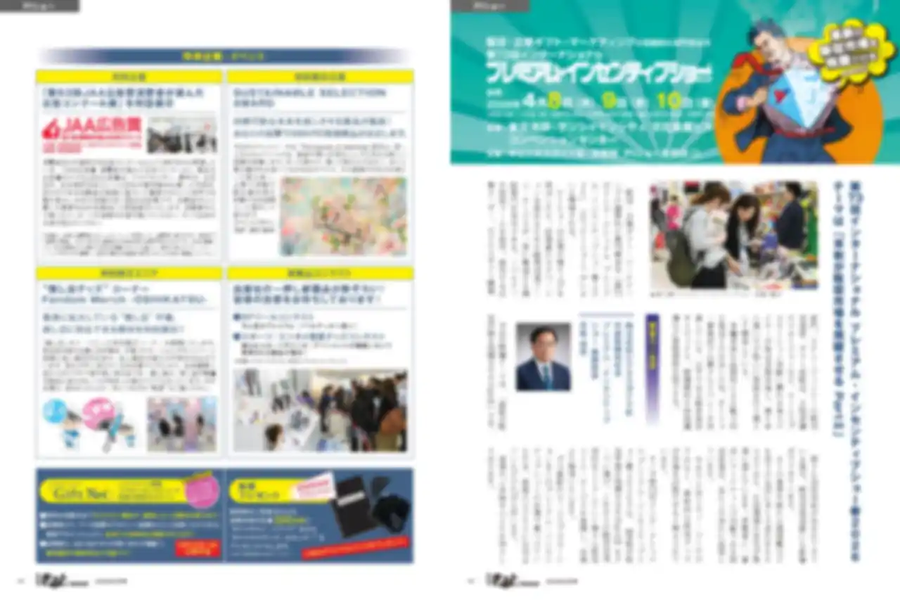 また、4月8~10日にサンシャインシティ文化会館ビルにて開催されるプレミアム・インセンティブショー(PIショー)の合本号として、注目出展社やセミナー、関連特集「販促最前線」も展開。PIショー会場でもご購入いただけます。 |