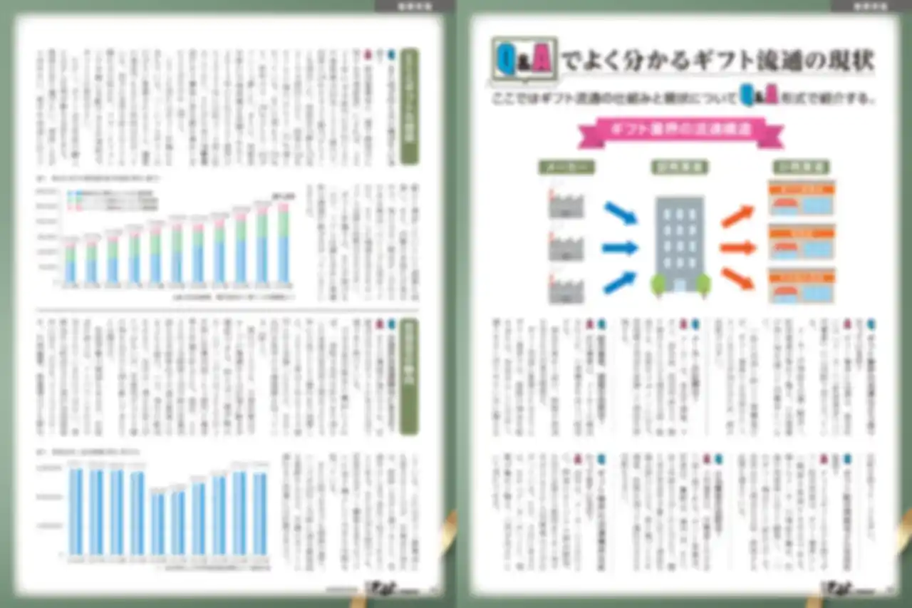 そもそもギフトとは一体何なのか。また、全体の市場規模やカジュアルギフト、フォーマルギフト、ソーシャルギフトの市場動向、そしてギフト問屋やEC、百貨店といった各プレーヤーの特徴や現状まで分かりやすく紹介します。保存版「ギフト用語集200」も掲載。ギフト流通関係者必見です。 |