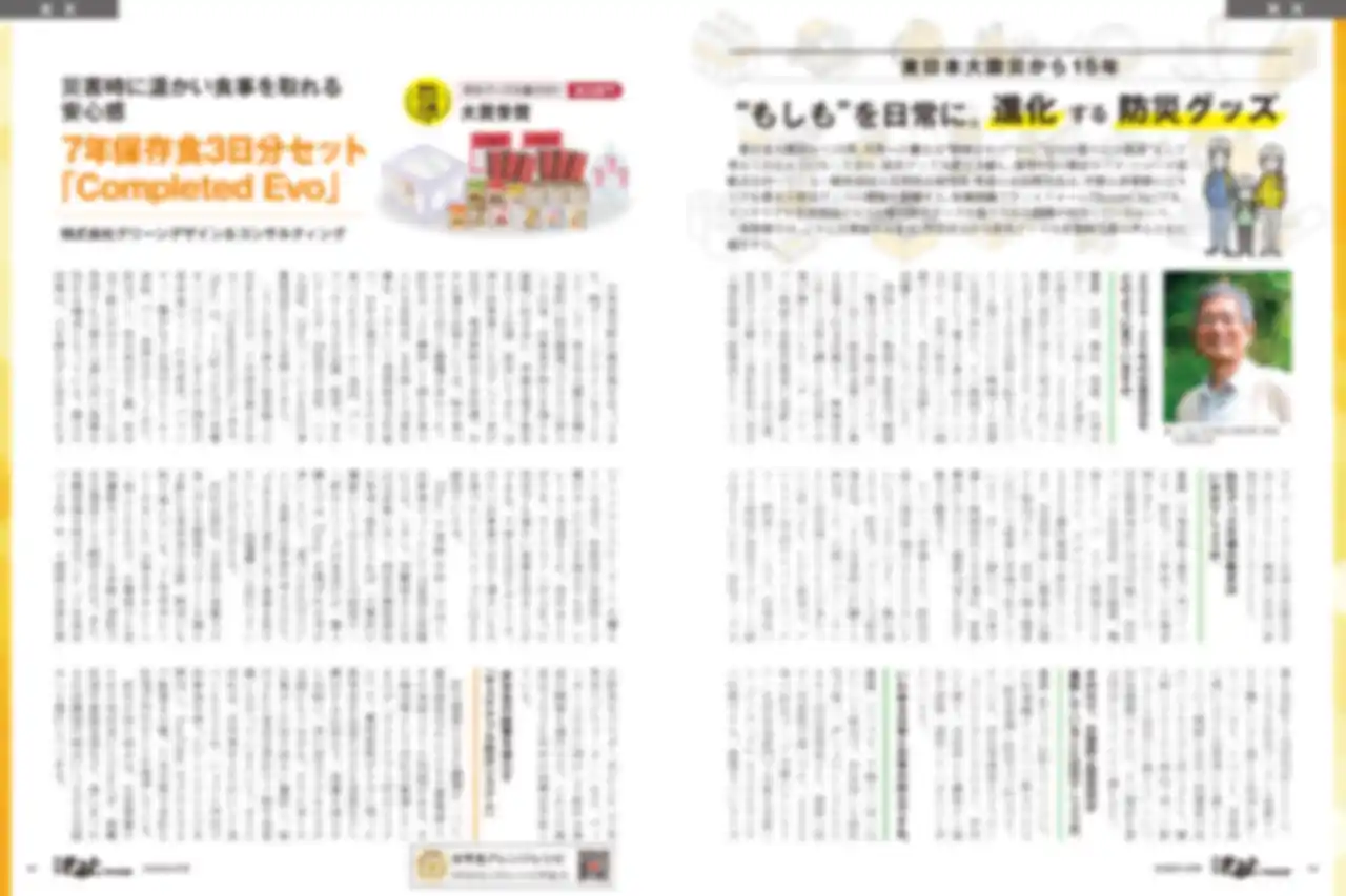 東日本大震災から15年を経て、災害への備えが「特別な物」から「日々の暮らしの延長」として考えられるようになってきた中で、防災グッズ大賞を主催する一般社団法人災害防止研究所やルームクリップのキーマンインタビュー、また、商品取材から防災グッズの今を探ります。 |