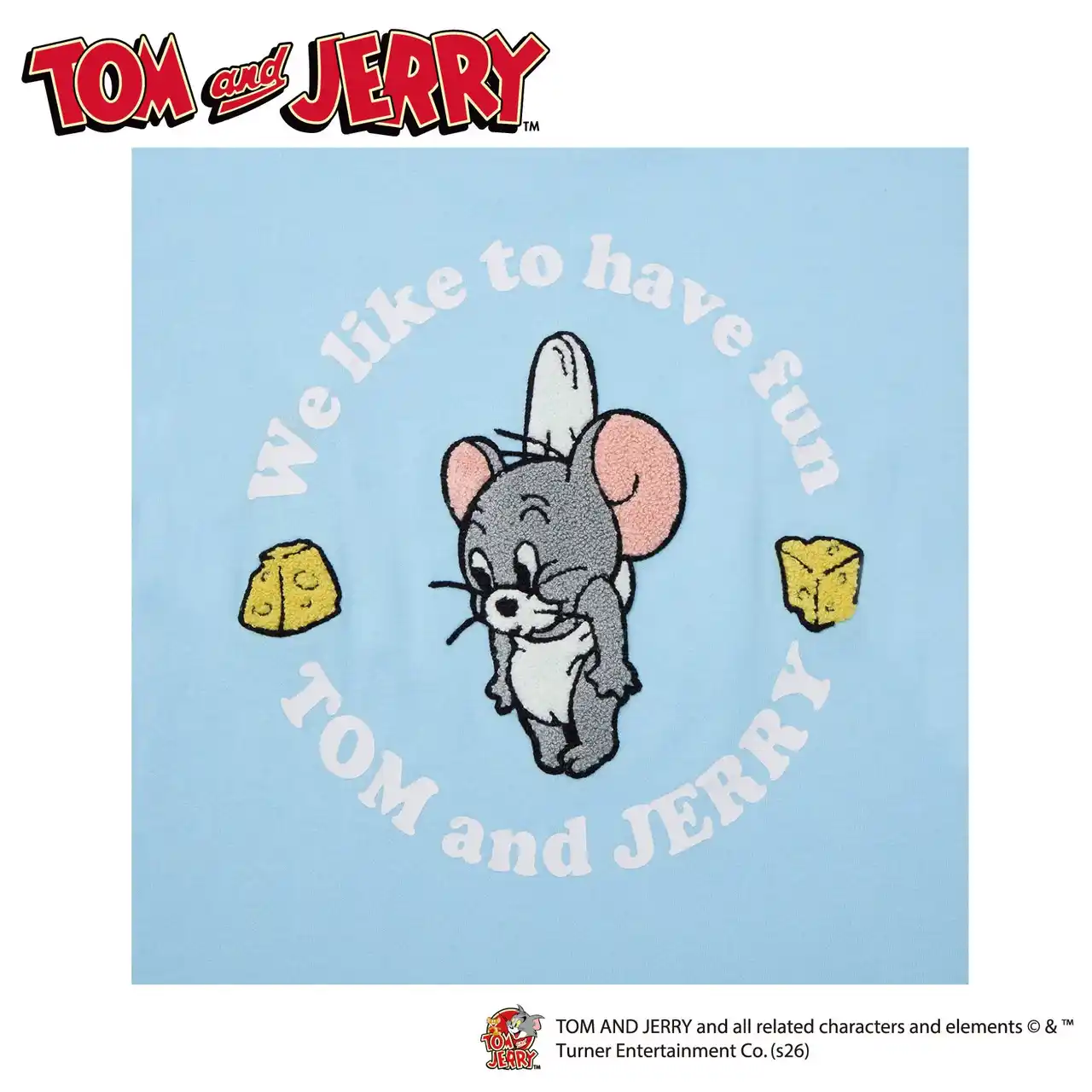 商品特長: フロントにロゴ刺繍、バックにジェリーとタフィーのイラストの刺繍をあしらいました。