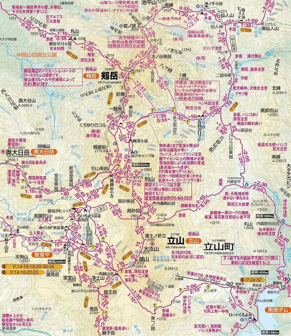 <パズルになる地図(剱岳・立山付近拡大)> |