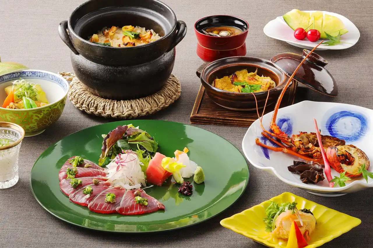 日本料理「千羽鶴」の目玉は、黒潮の恵みを受けた「南房総産伊勢海老の鬼殻焼き」。他にも銚子の炙り鰹や多古町産の大和芋など、千葉が誇る山海の厳選食材を五感で堪能する、まさに“ちばの恵み”を凝縮した逸品揃いです。 |