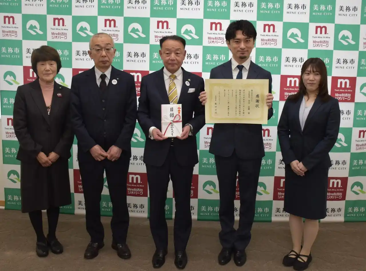 2026年3月13日、美祢市役所で行われた贈呈式には代表・安田が出席し、篠田洋司市長と対談。行政と民間それぞれの「限界と可能性」について率直に言葉を交わした。 |