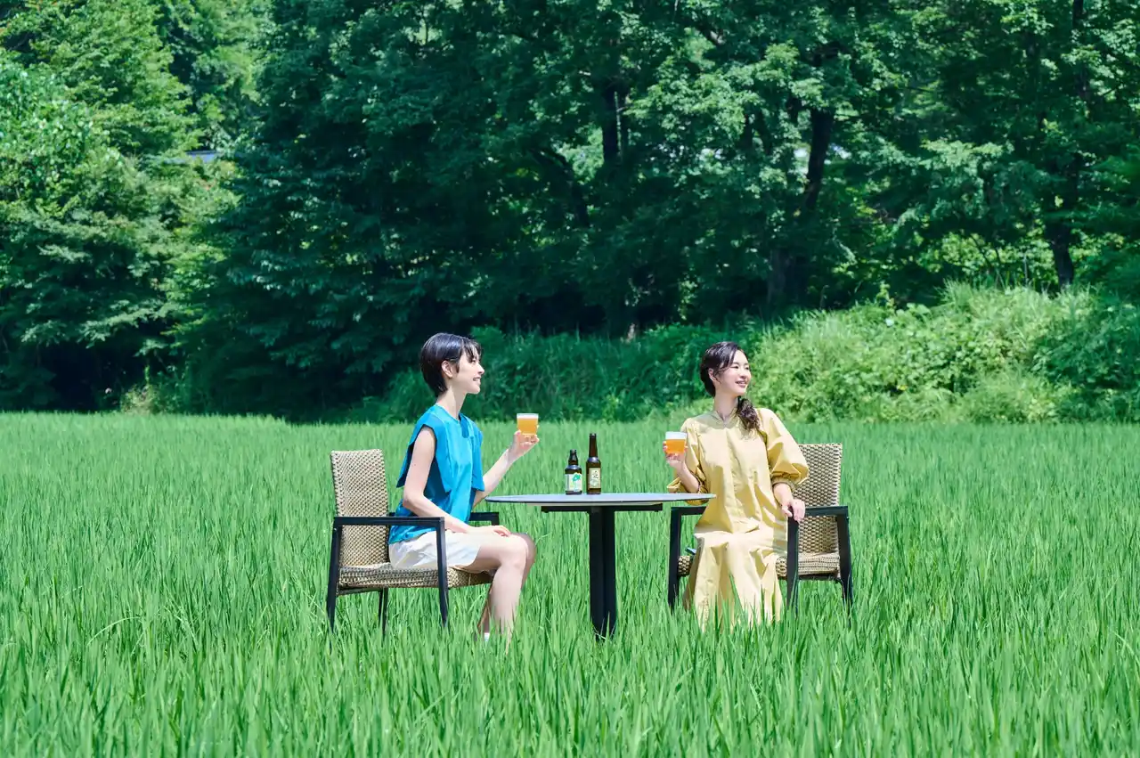 | 施設内にある8,500平方メートルの田んぼの中央に、寛ぎながらビールを飲めるビアスポットを設置します。稲穂が風に揺れる田んぼや木漏れ日が差し込む森林、そして奥にそびえる那須連山を一望できる特等席です。冷えたクラフトビールを手に、広大な自然に包まれながら、日常の喧騒から離れてリラックスした時間を楽しめます。 | |||||||||