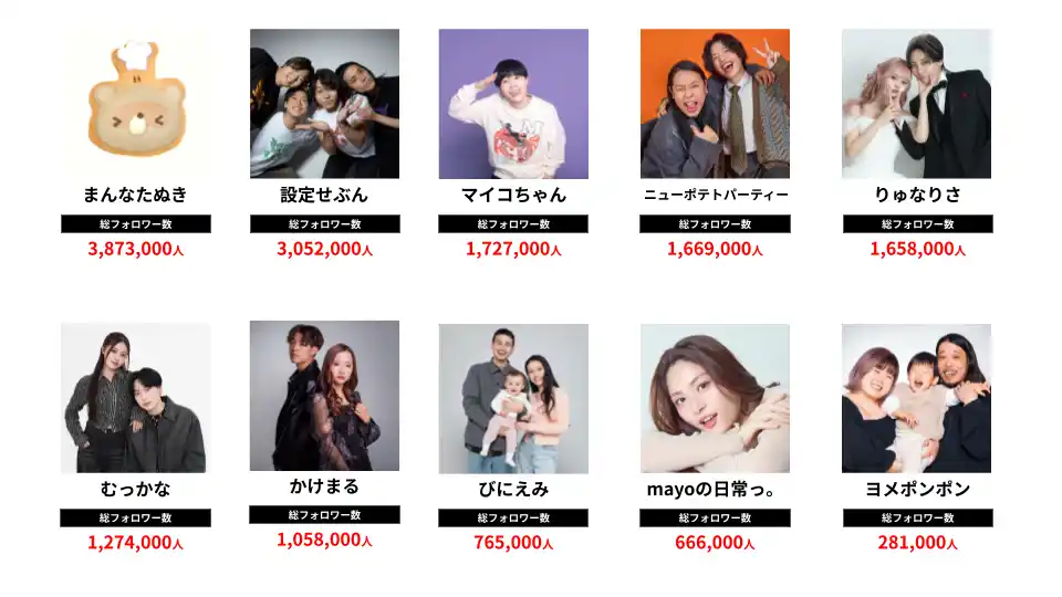 | 「BitStar Production」には、YouTubeやTikTokをはじめとするソーシャルメディアで活動する多種多様なクリエイターが550名以上所属しています。また、女性に特化したクリエイターレーベル「OOO Entertainment」も展開しています。 | |||
