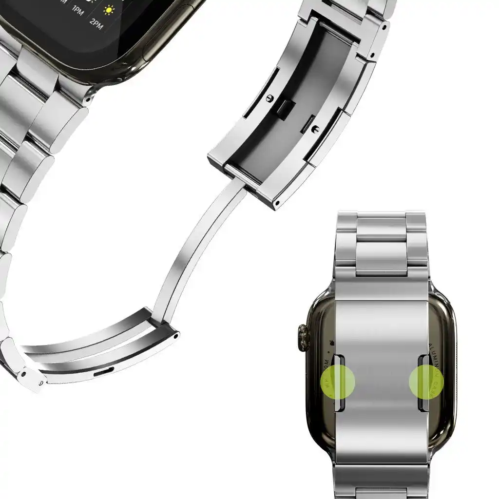 本製品は高耐久な316Lステンレスを採用したApple Watch用バンドです。DLC(ダイヤモンドライクカーボン)コーティングにより、傷がつきにくく、美しい質感と輝きを長く保ちます。日常使いはもちろん、ビジネスシーンからアクティブなシーンまで快適にお使いいただけます。 |