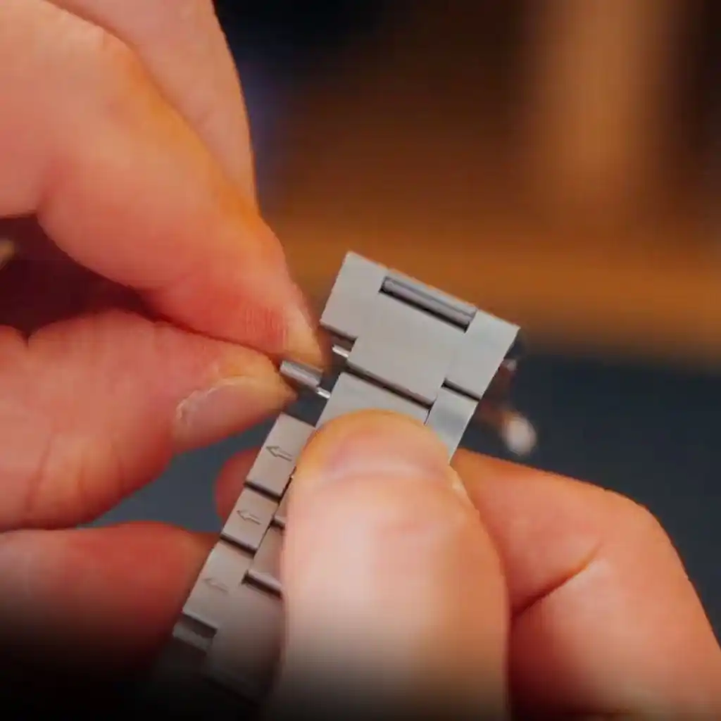 クラシックな3連構造を採用し、各リンクが手首のラインに沿ってなめらかに可動。自然にフィットし、メタルバンドでありながら快適な着け心地を実現しました。 |