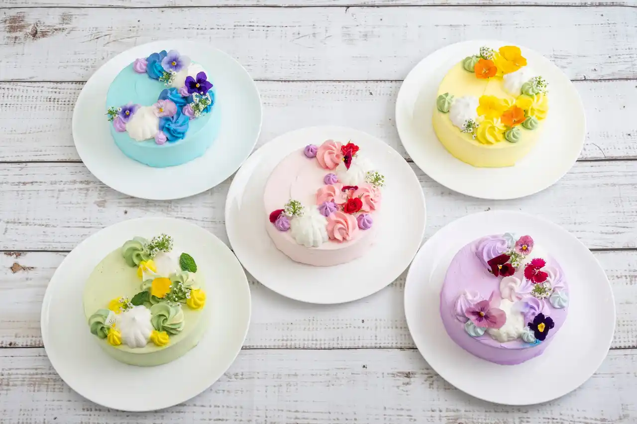 ※ケーキの色はレッド系、ブルー系、イエロー系、グリーン系、パープル系の5色から予約時にお選びください。 |
